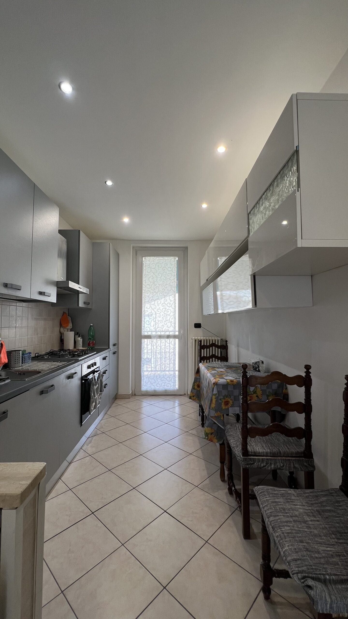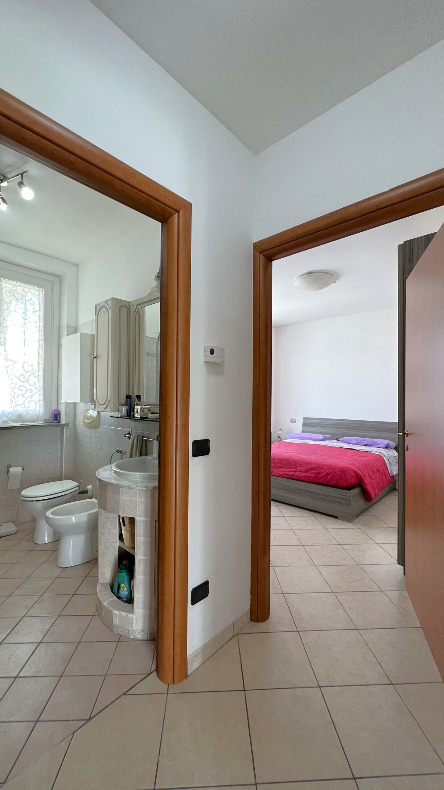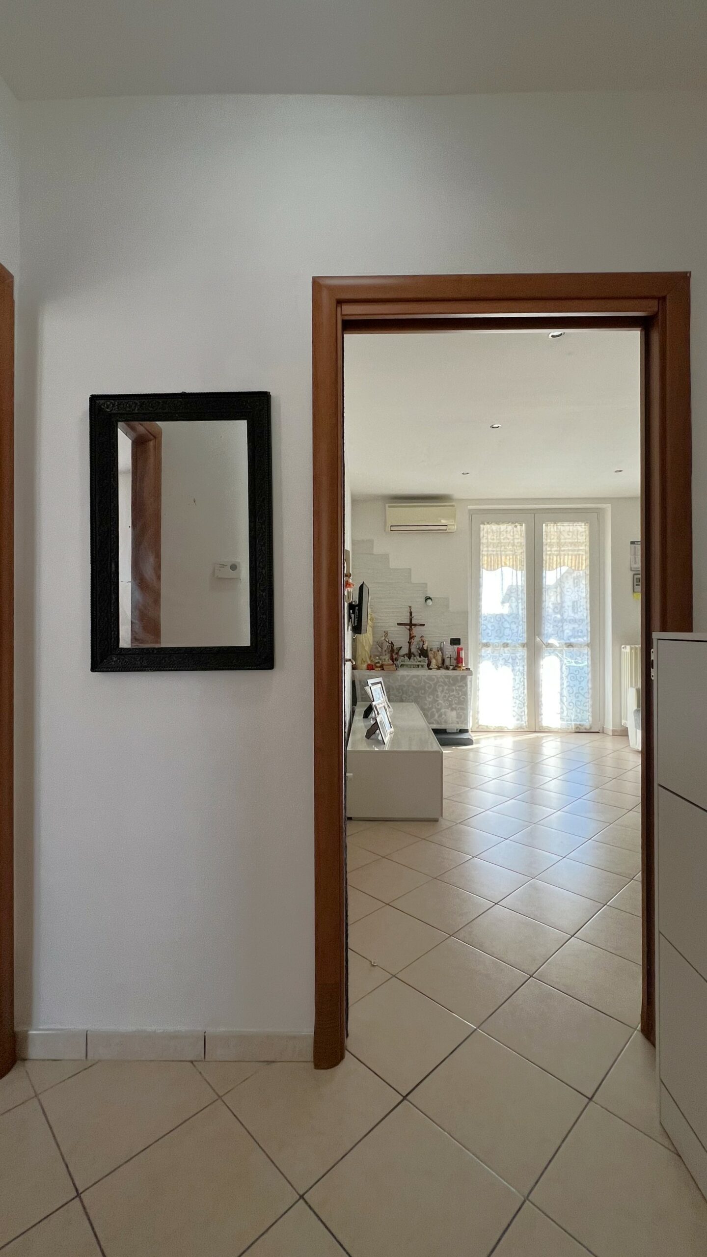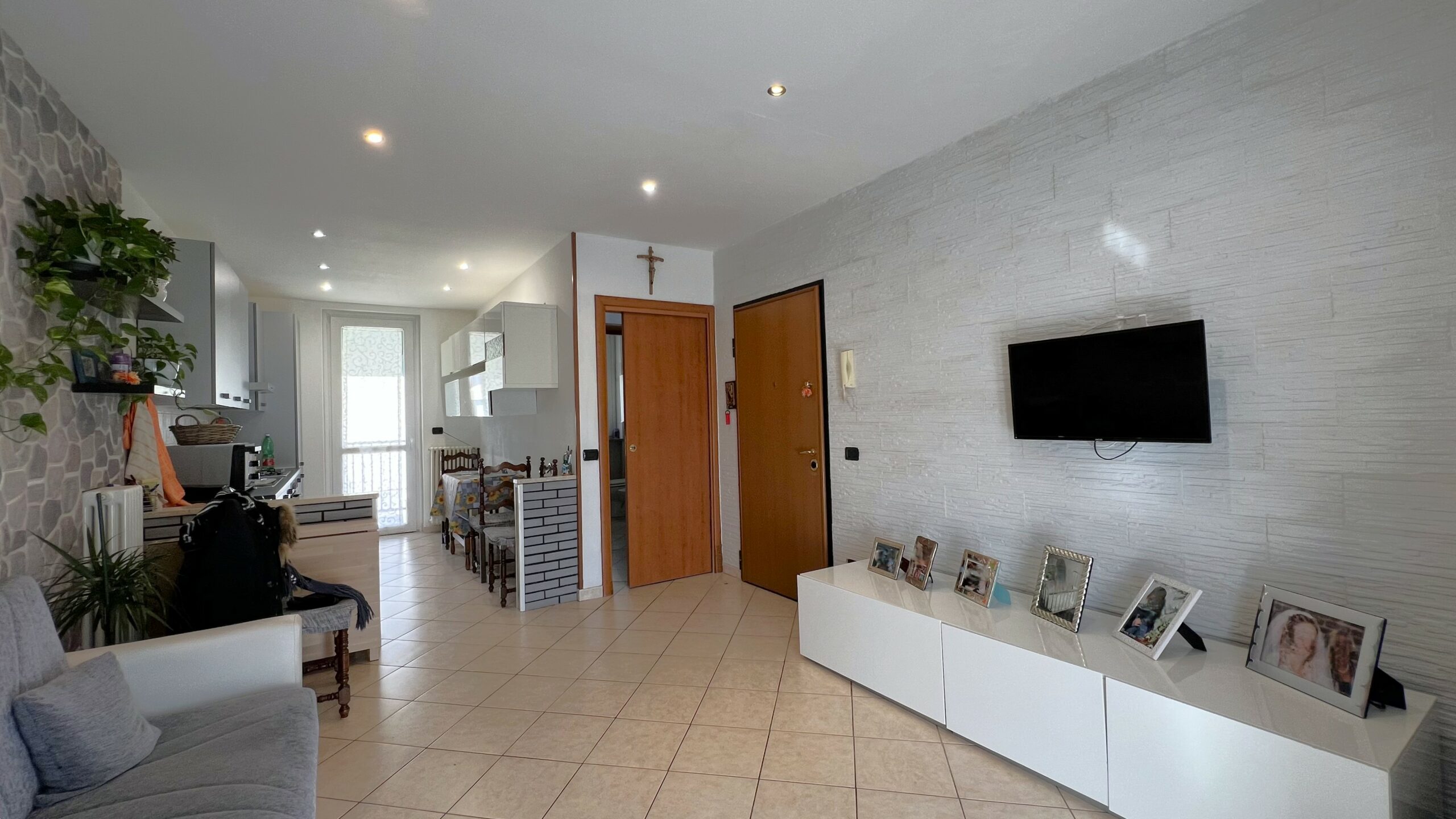 L’abitazione, esposta a Sud – Est – Ovest, si compone da ingresso su soggiorno con cucina a vista ed uscita sul terrazzo coperto, disimpegno, ampia camera matrimoniale con portafinestra che conduce al terrazzo ed attiguo servizio igienico con doccia.