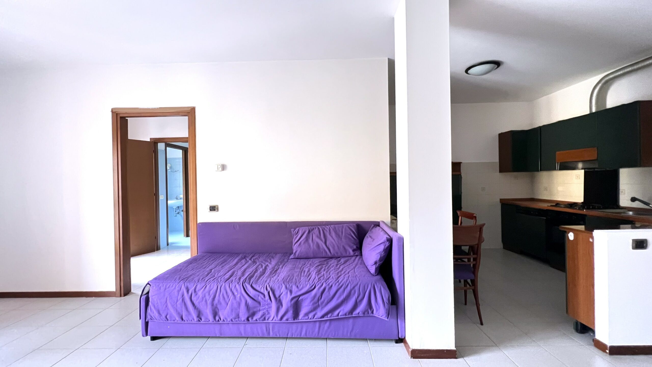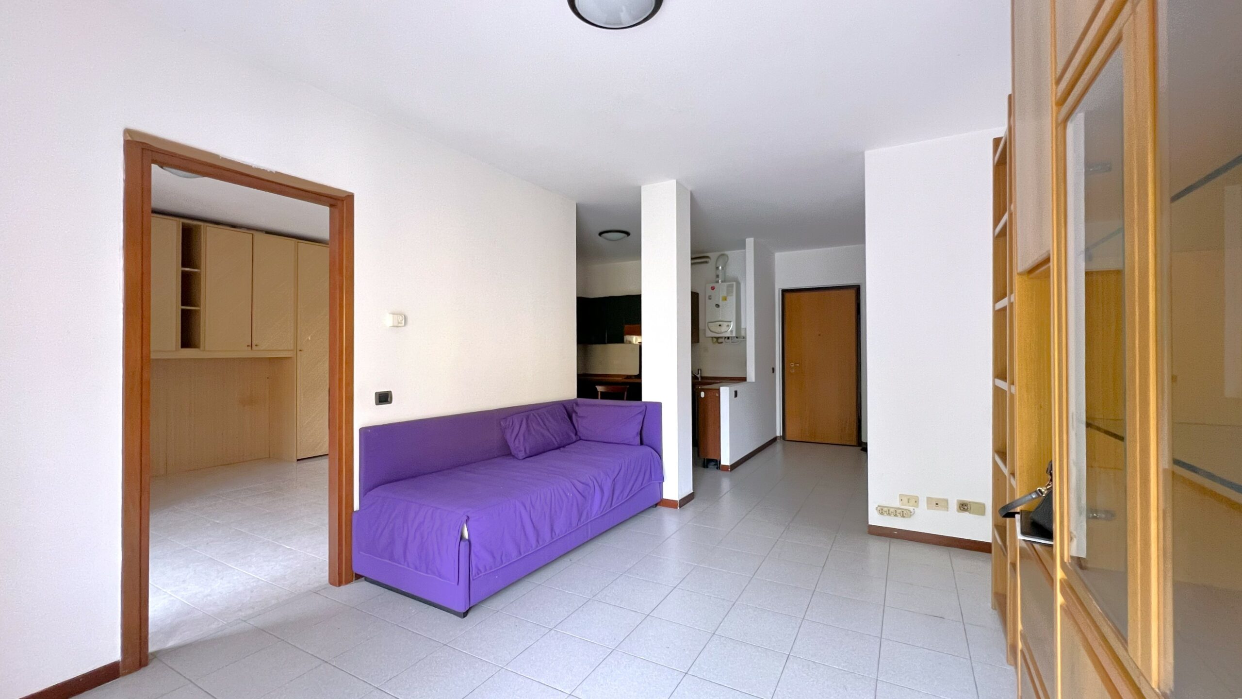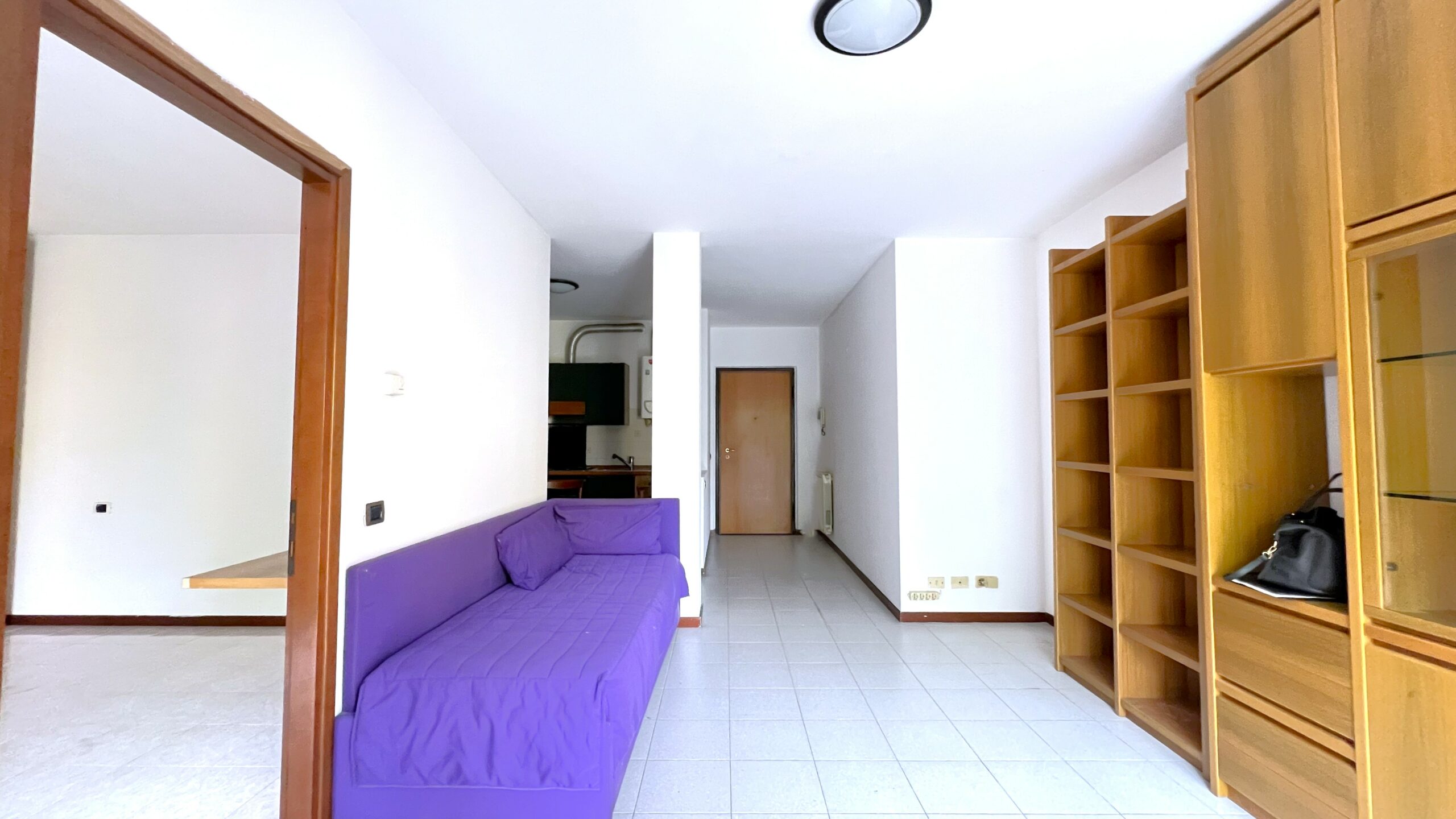 L’abitazione, di mq. 50 si compone da luminoso living con cucina abitabile a vista ed accesso al terrazzino, camera matrimoniale ed attiguo disimpegno e bagno con doccia.
